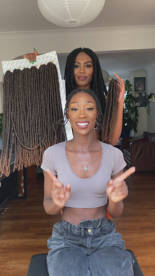 At Boho Locs, we have every woman covered! With styles ranging from 12” to 30” and innovative color combinations , we guarantee that we have something for everyone. Our locs are suitable for cornrow and individual crochet install and are lightweight, keeping your tresses tension-free.