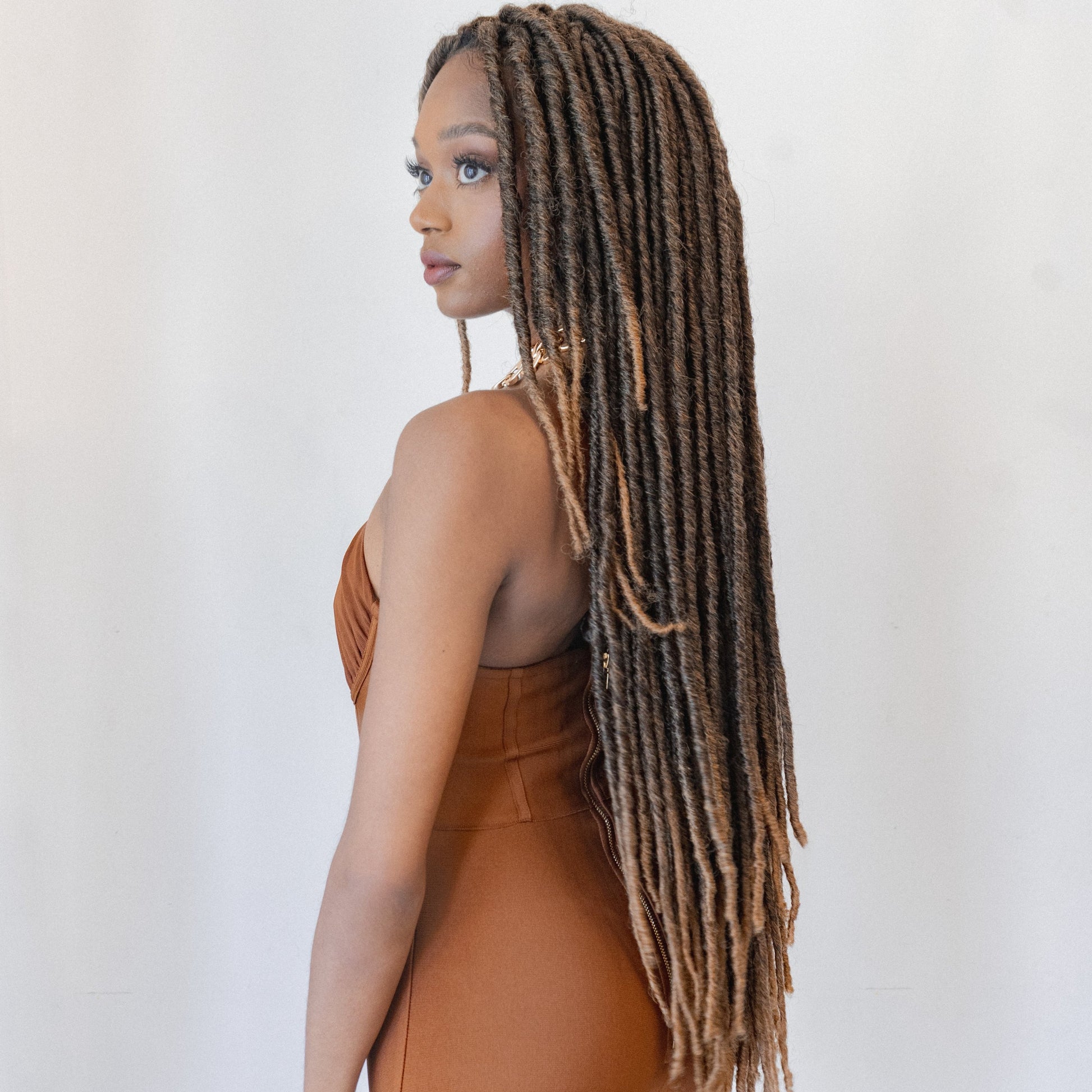Our Supreme Boho locs are made from the highest quality synthetic hair, with enough in one pack for a full install. The locs have movement and texture, they are approximately 1cm thick. This timeless look offers a level of elegance that is perfect for a sexy but professional look.