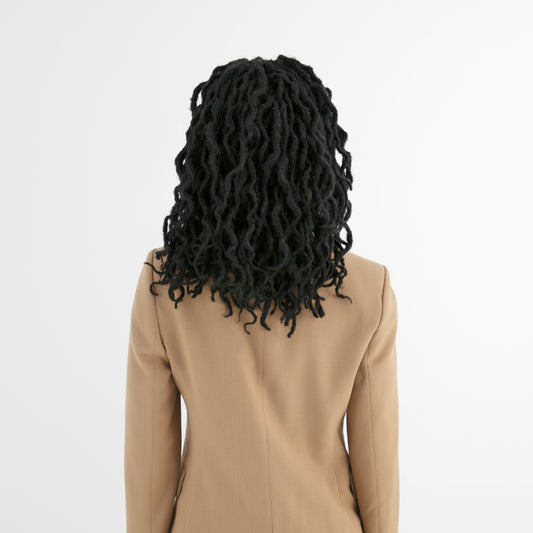 Our BOHO GODDESS LOCS® are crochet faux locs around 1cm thick, and have a non-uniform curl pattern consisting of unique kinks and curls. No two locs have the same curl pattern which results in a natural look.