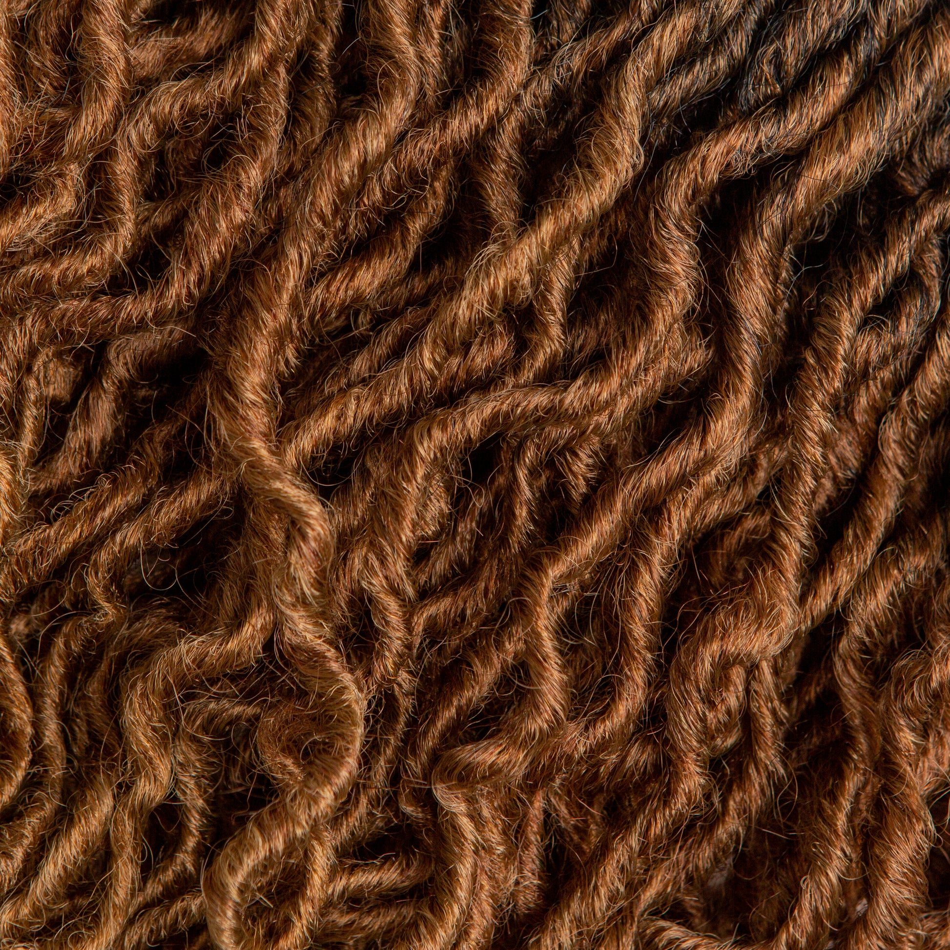 These beautiful locs are in our bespoke color TOFFEE which is an ombre color transitioning from a rich brown into enchanting golden brown ends, for a natural sunkissed look.